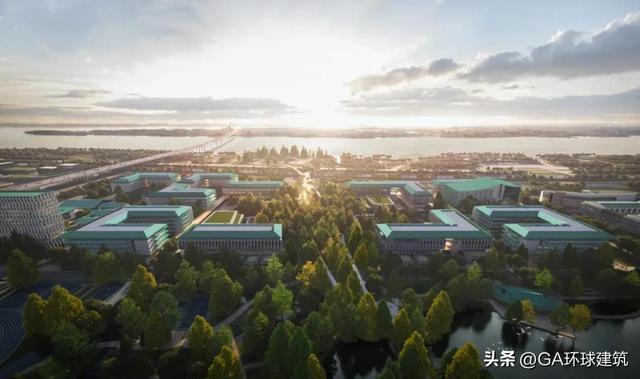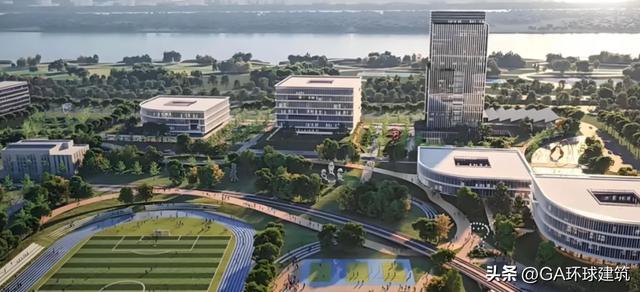 校园建筑由中衡设计集团设计,方案设计费达1829.68万元。总体理念以“校城融合、传承创新、国际视野、滨江特色”为核心,采用“一核两轴四组团多廊道”的规划结构,形成有序的校园空间格局。